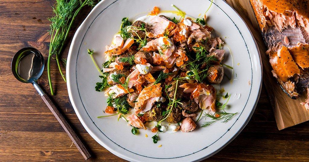 Hash brown potatoes, with smoked salmon, onions, a little sour cream, horseradish, mustard, chives and parsley. Traeger smoked salmon traeger grills. Cooking time will depend on the thickness of your fillets. Salmon can be smoked using the big chief smoker, little chief smoker, or the smokehouse gas smoker. A simple dressing of dijon mustard and lemon juice is the perfect finish.